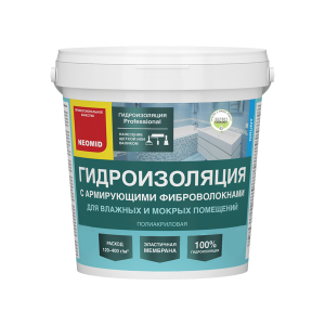 Гидроизоляция с армирующими фиброволокнами для влажных и мокрых помещений NEOMID 1,3кг (1/12)*** #