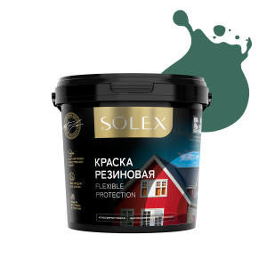 —Краска резиновая SOLEX для фасадов и интерьеров зеленый 1,3кг (1/12)