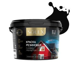 Краска резиновая SOLEX для фасадов и интерьеров черный 3кг (1/4)
