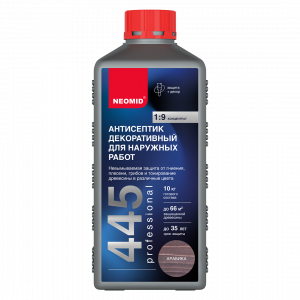 —Антисептик декоративный NEOMID 445 для наружных работ АРАБИКА концентрат 1:9 1л (1/12)
